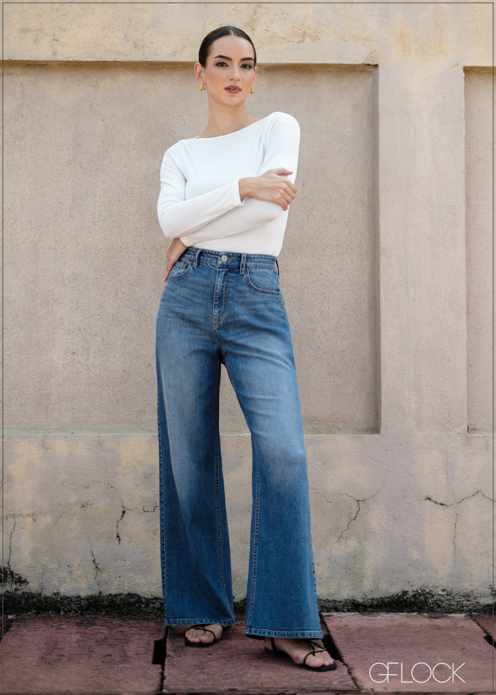 Mid Wash Wide Leg Jean - Short Length - 090425
