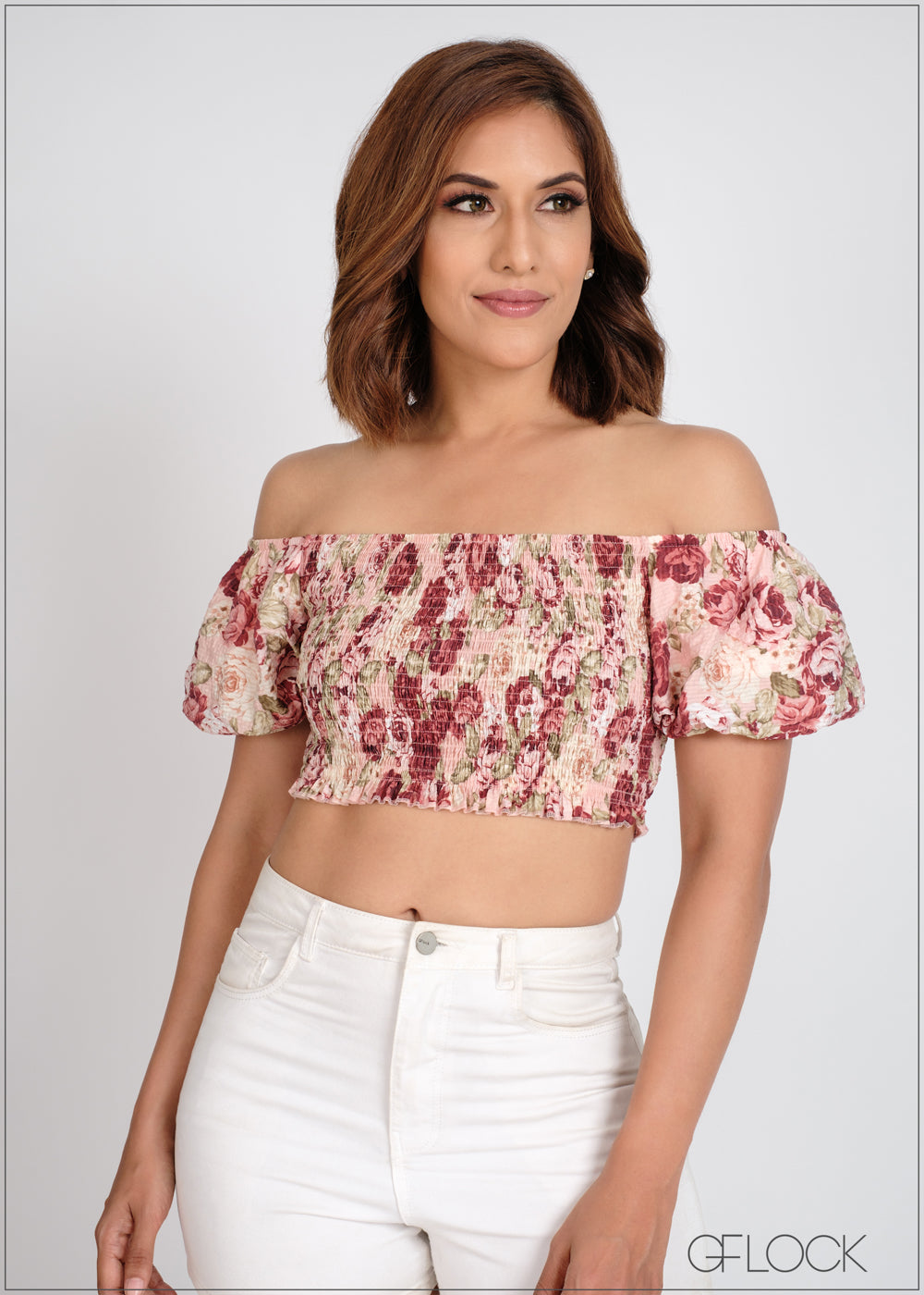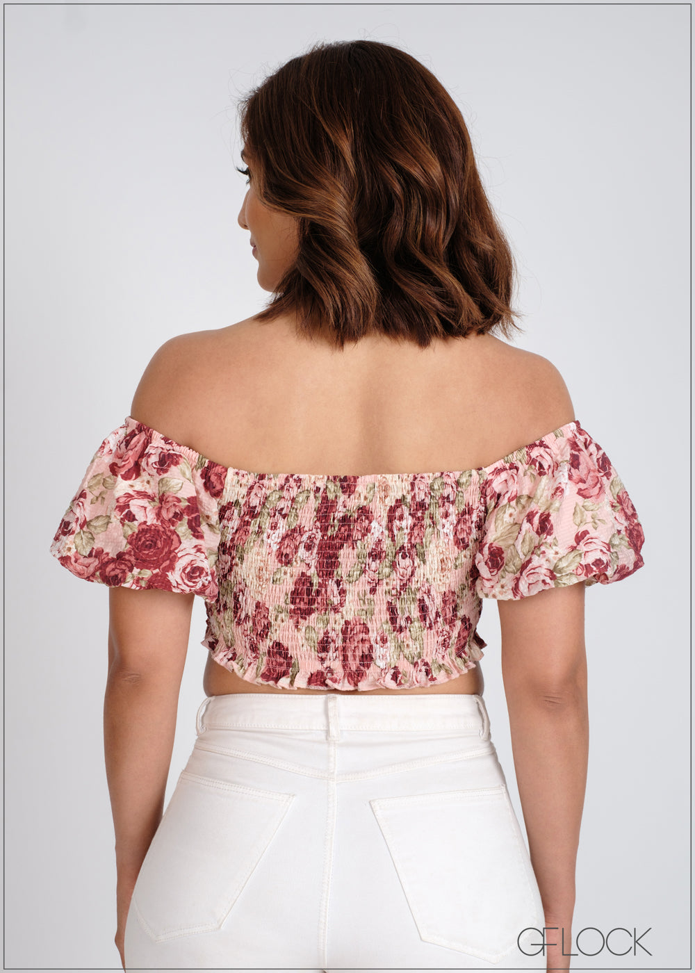 Puff Sleeve Smocked Crop Top - 310524