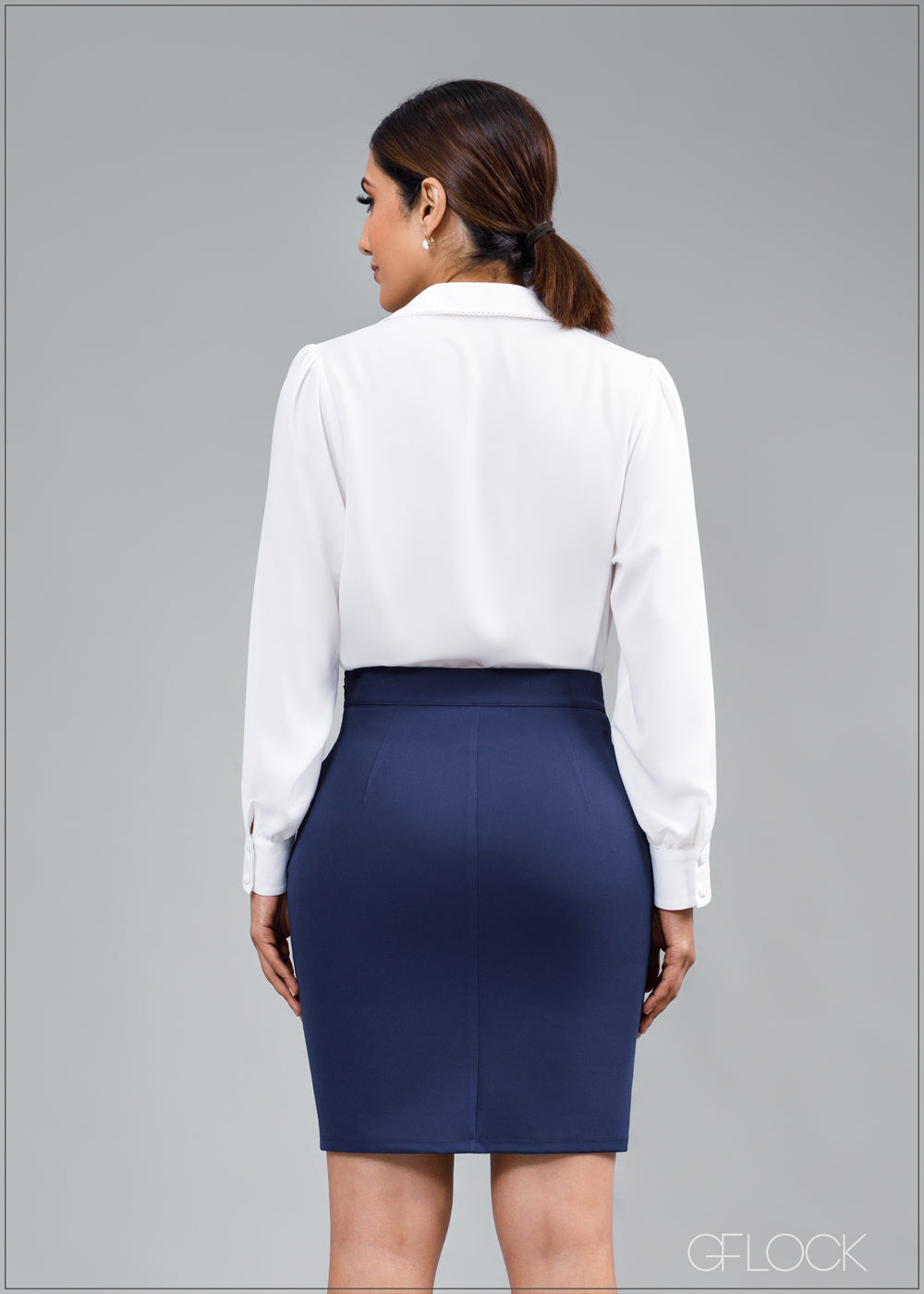 Infuse a dash of sophistication into your work wardrobe with this short pencil skirt. Perfectly tailored for a professional yet chic look, its shorter length adds a contemporary twist. Versatile enough for office meetings or post-work gatherings, this skirt effortlessly combines style and efficiency. Embrace the modern professional aesthetic with a wardrobe essential that exudes confidence and flair.