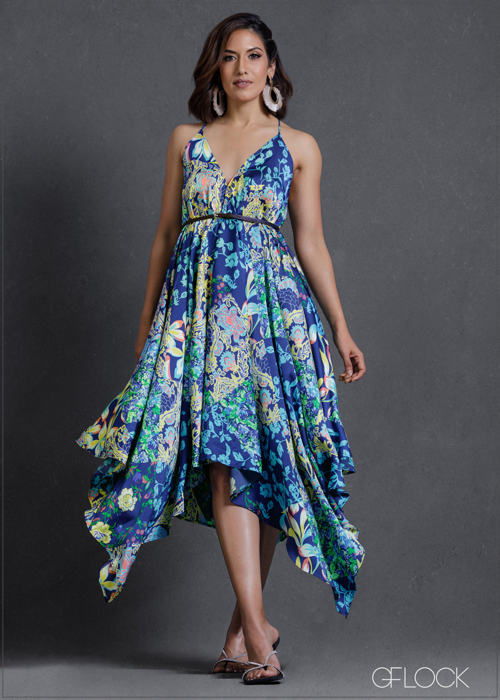 Make a statement in this sleeveless dress adorned with vibrant prints and a playful tie-up feature. Effortlessly chic, it's perfect for those who seek a balance between style and comfort. The sleeveless design adds a touch of breezy elegance, while the tie-up detail accentuates the waist for a flattering silhouette. Step into the evening with confidence, embracing the allure of this printed masterpiece.