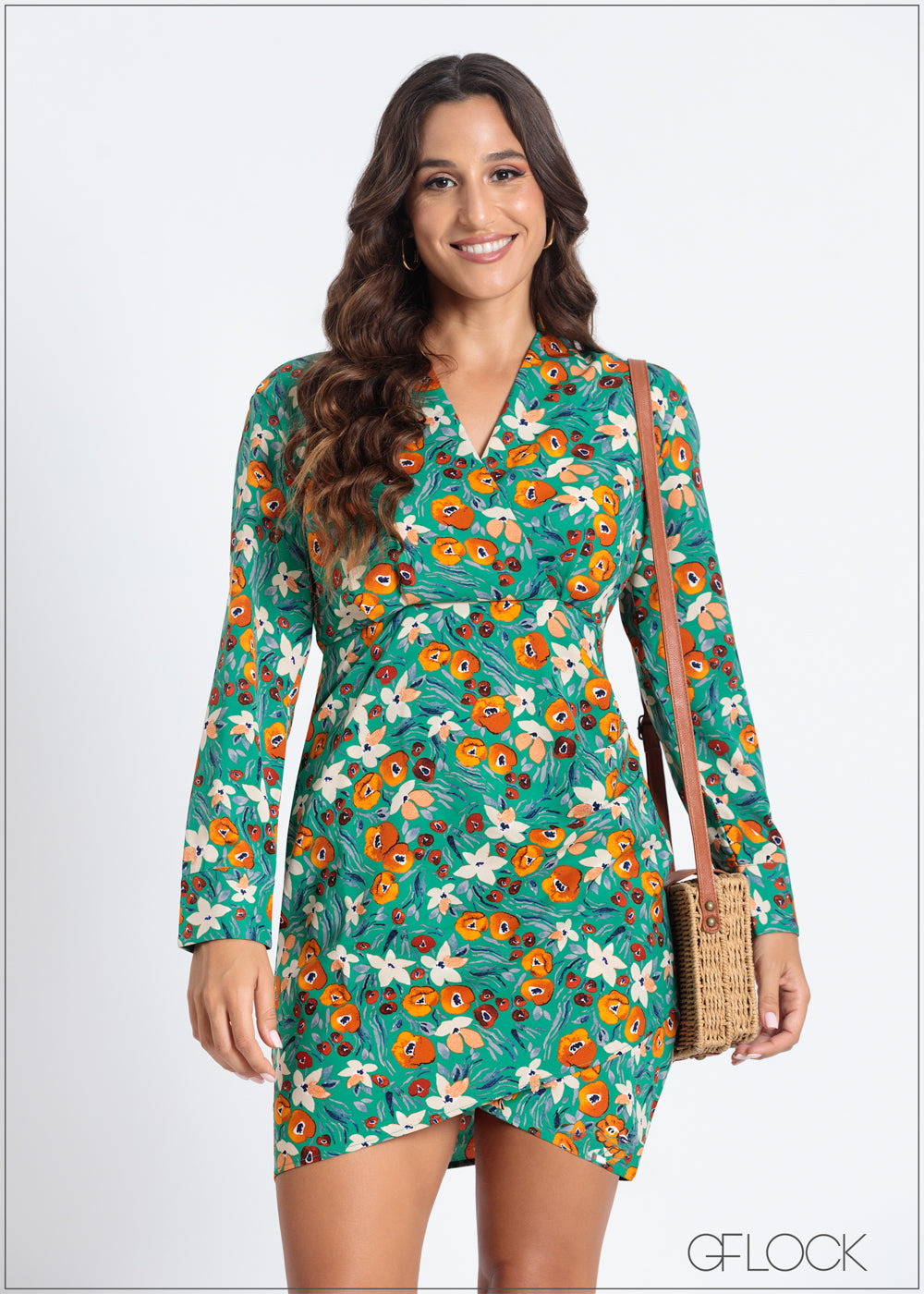 Collared Printed Wrap Dress - 050824