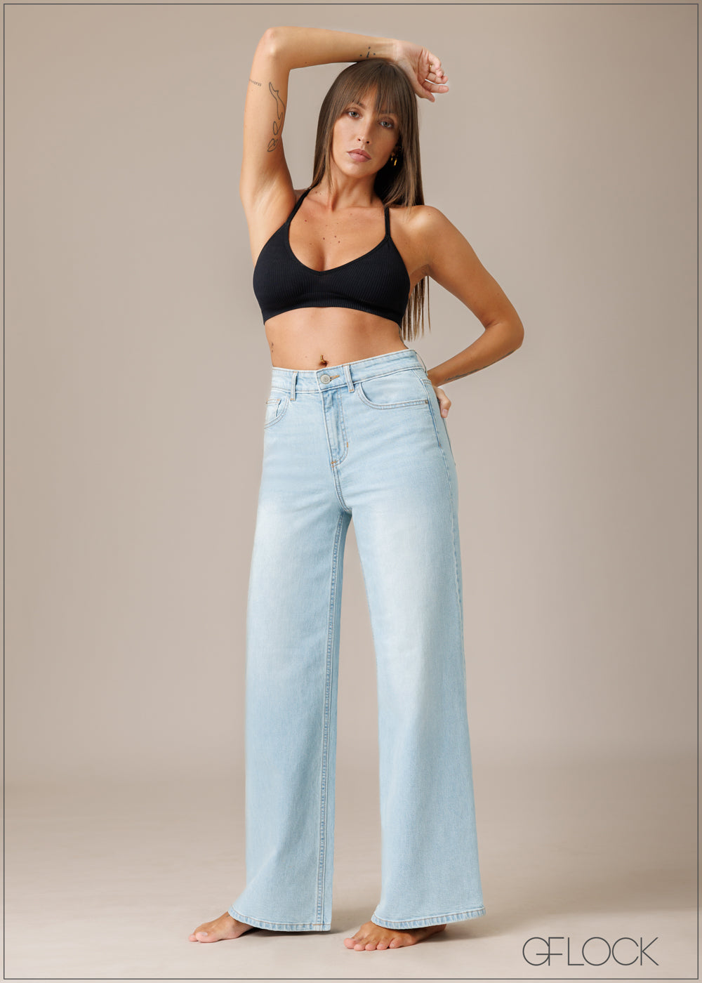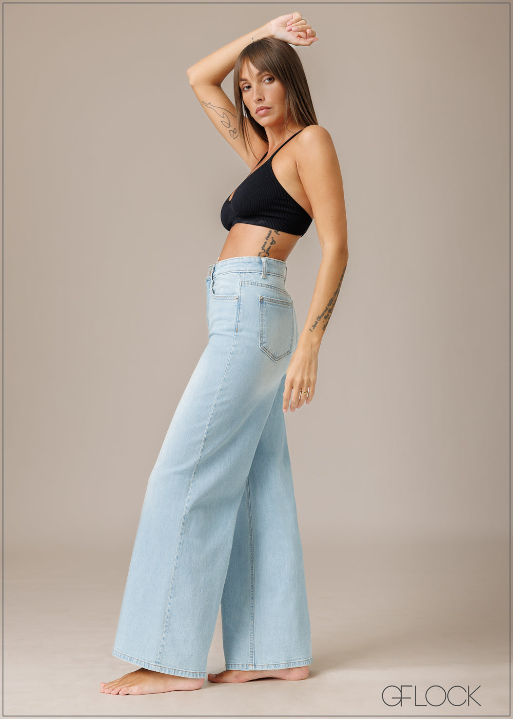 Light Wash Wide Leg Jean - Short Length - 210326D