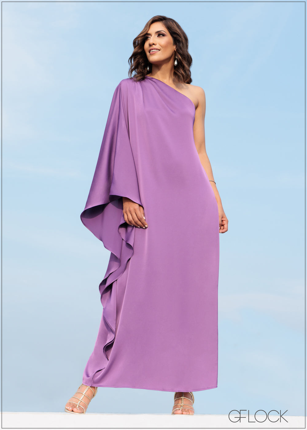 Embrace elegance in motion with our one-shoulder purple satin dress, featuring dreamy flowy sleeve details.