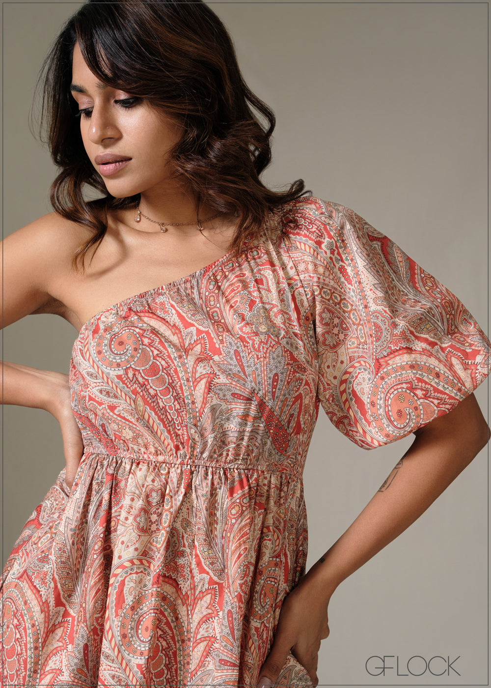 One Shoulder Printed Dress - 130226