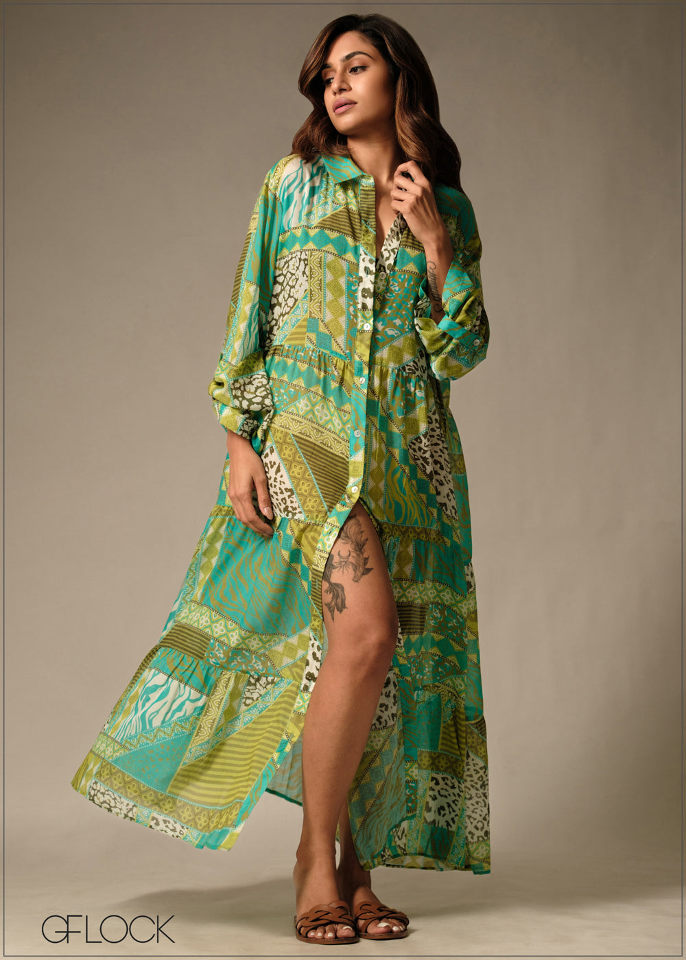 Printed Shirt Dress - 160126