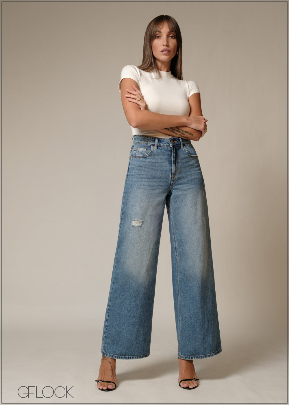 Wide Leg Ripped Jean - Short Length - 230226D